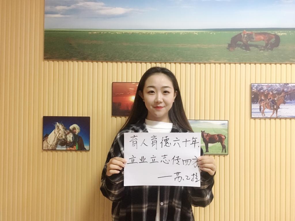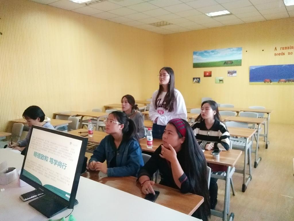 活动伊始,孟璐同学为大家介绍了beats365官网入口的历史以及校徽、校歌、校训等相关内容,带领党员们感悟呼院60年光辉,并重温校歌《勇敢的鹰》。最后,党员们纷纷执笔为呼院写下最真挚的祝福。