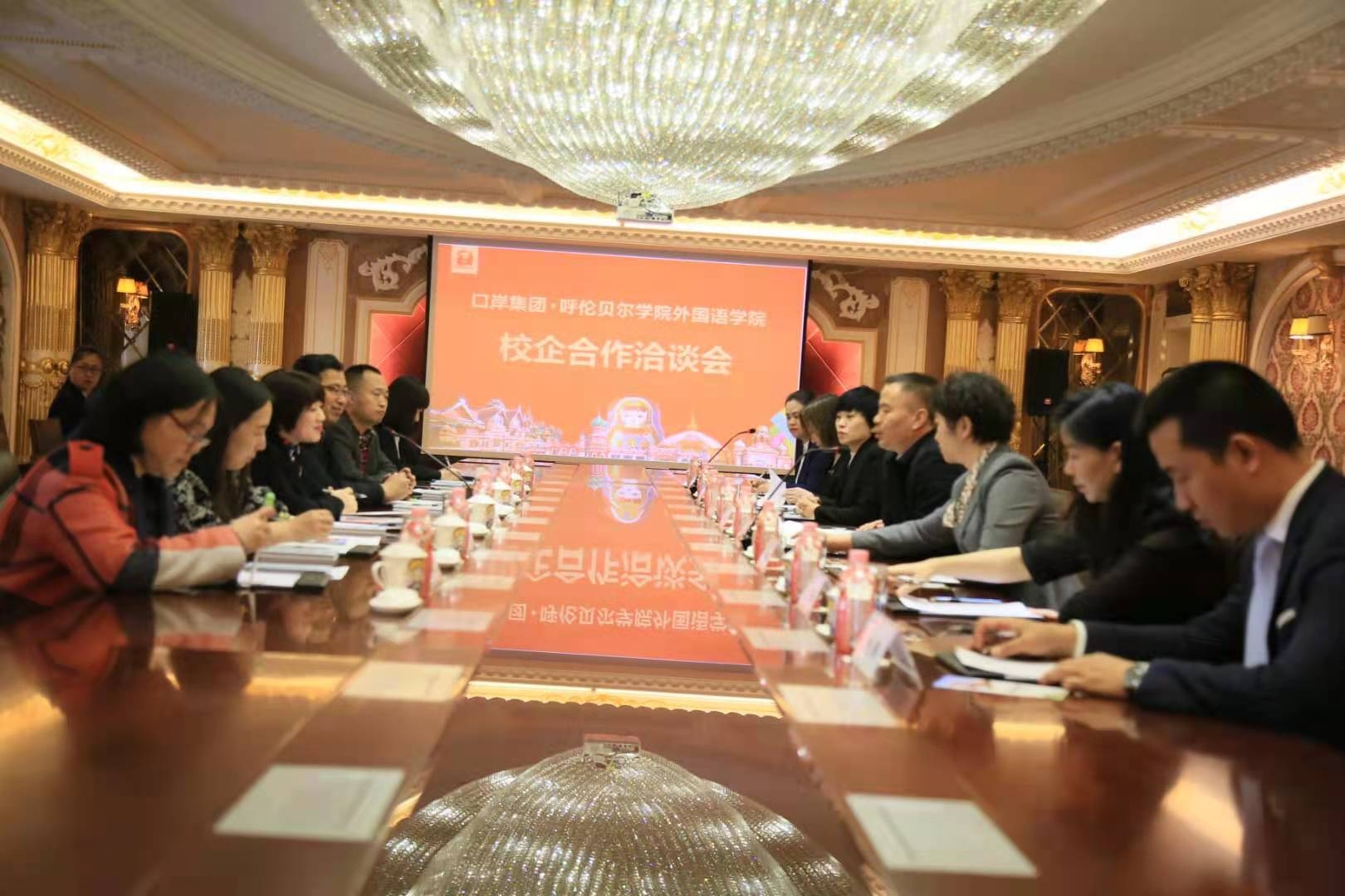 4月28日上午11时,beats365官网入口与满洲里口岸集团在满洲里召开了校企合作洽谈会。口岸集团董事长王泽军及全体高管、外国语公司党总支书记金鑫鑫、经理吕佩臣、副经理齐颖、实验实训中心主任黄东升等出席。