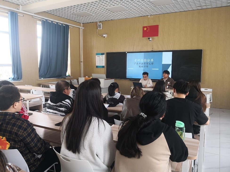 2025届优秀毕业生结合自身考研经历,从院校及专业选择、复习计划制定、备考心态调整等方面展开分享。他们详细介绍了考研各科目的复习重点与方法,如在专业课复习中,要注重语法体系梳理、词汇积累及阅读写作能力提升;公共课备考需合理规划时间,加强政治的学习。同时,还分享了复试技巧和调剂经验,提醒学弟学妹们提前做好多手准备。在互动提问环节,同学们踊跃发言,就考研资料获取、跨专业考研注意事项等问题积极提问,“嘉宾们”耐心解答,现场交流氛围浓厚。