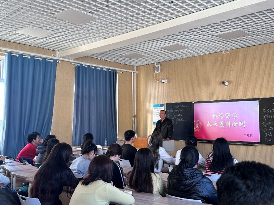 在同学们分享结束后,王树恩经理结合当下AI时代的大背景,对同学们的职业规划与学习方向给出了独到见解。他鼓励同学们放眼国际,积极考虑留学深造。王经理指出,在AI技术迅猛发展的当下,国际视野和跨文化交流能力愈发重要。留学不仅能让同学们接触到前沿的学术知识和教育理念,还能培养同学们在多元文化环境中的适应能力与创新思维,为未来的职业发展增添强大助力。王经理的话语为正处于职业选择迷茫期的俄语二班同学们,点明了关键思路,引导大家认真思考起未来的发展方向。