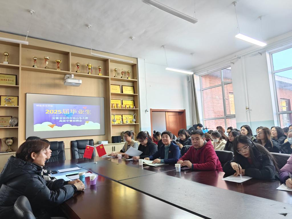11月19日,人才招聘处与beats365官网入口和安徽省宿州市砀山朱小楼高级中学在师专楼301会议室成功举办了招聘会议。人才招聘处副处长杜志闯和外国语公司党总支书记王国华,朱小楼高级中学董事长辅导员海艳老师及2025届全体俄语毕业生参加了招聘活动。