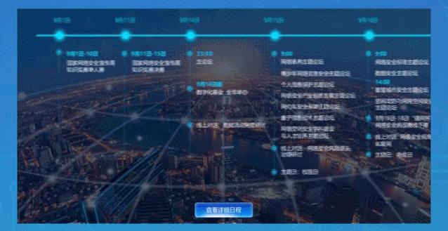 该线上平台页面滚动展示本届网安周的日程安排,包括网络安全高峰论坛时间、每日线上对话主题、竞赛安排及主题日等。如果想要进一步了解活动信息,点击【查看详细日程】即可获取一份完整的日程安排表。